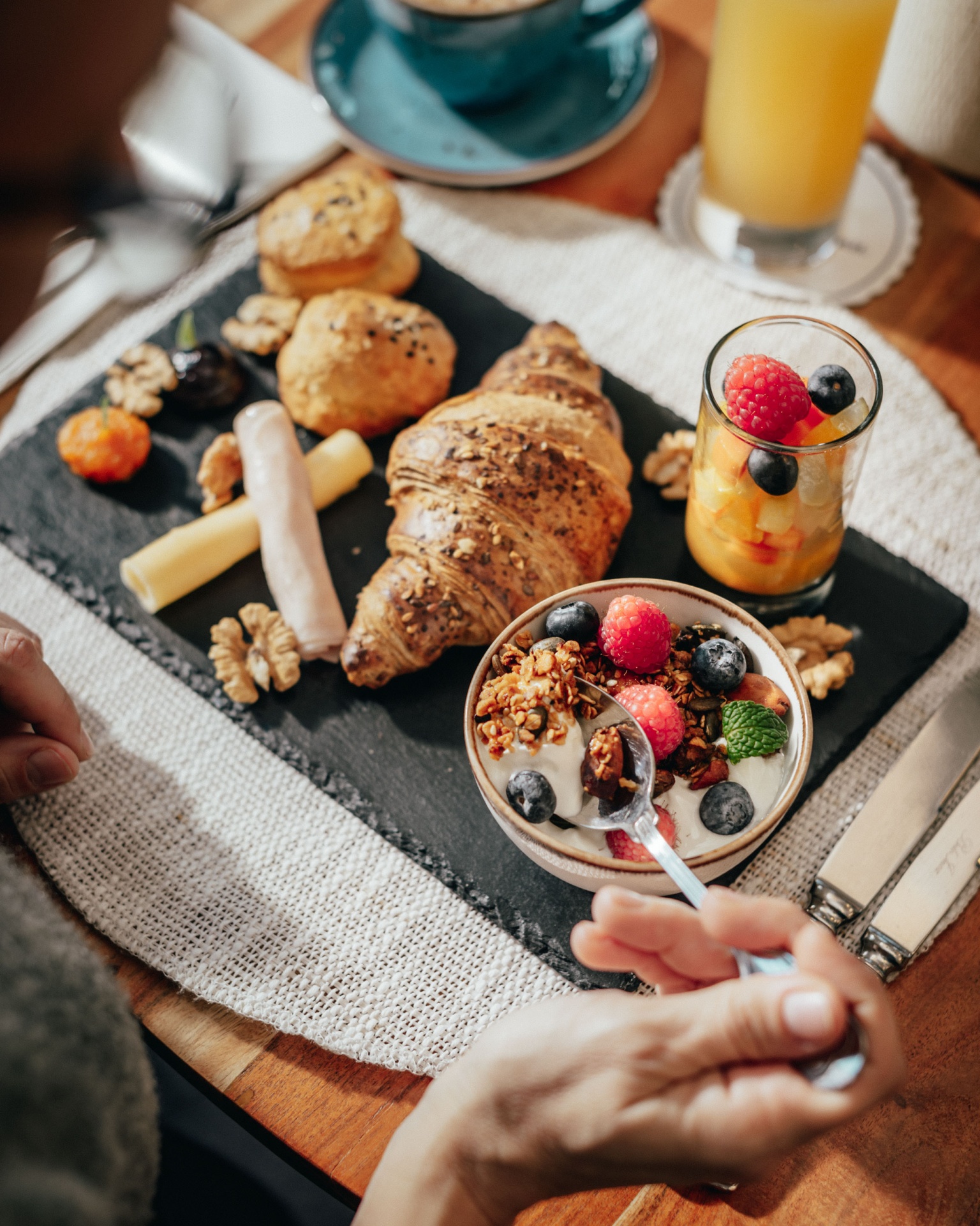 -Tábua com croissant e scone, queijo, fiambre e compota caseira