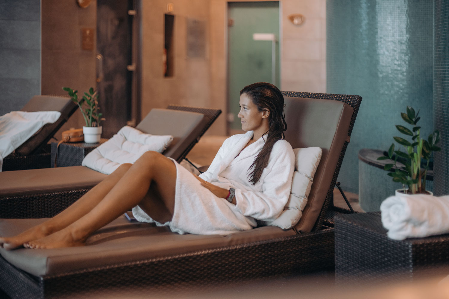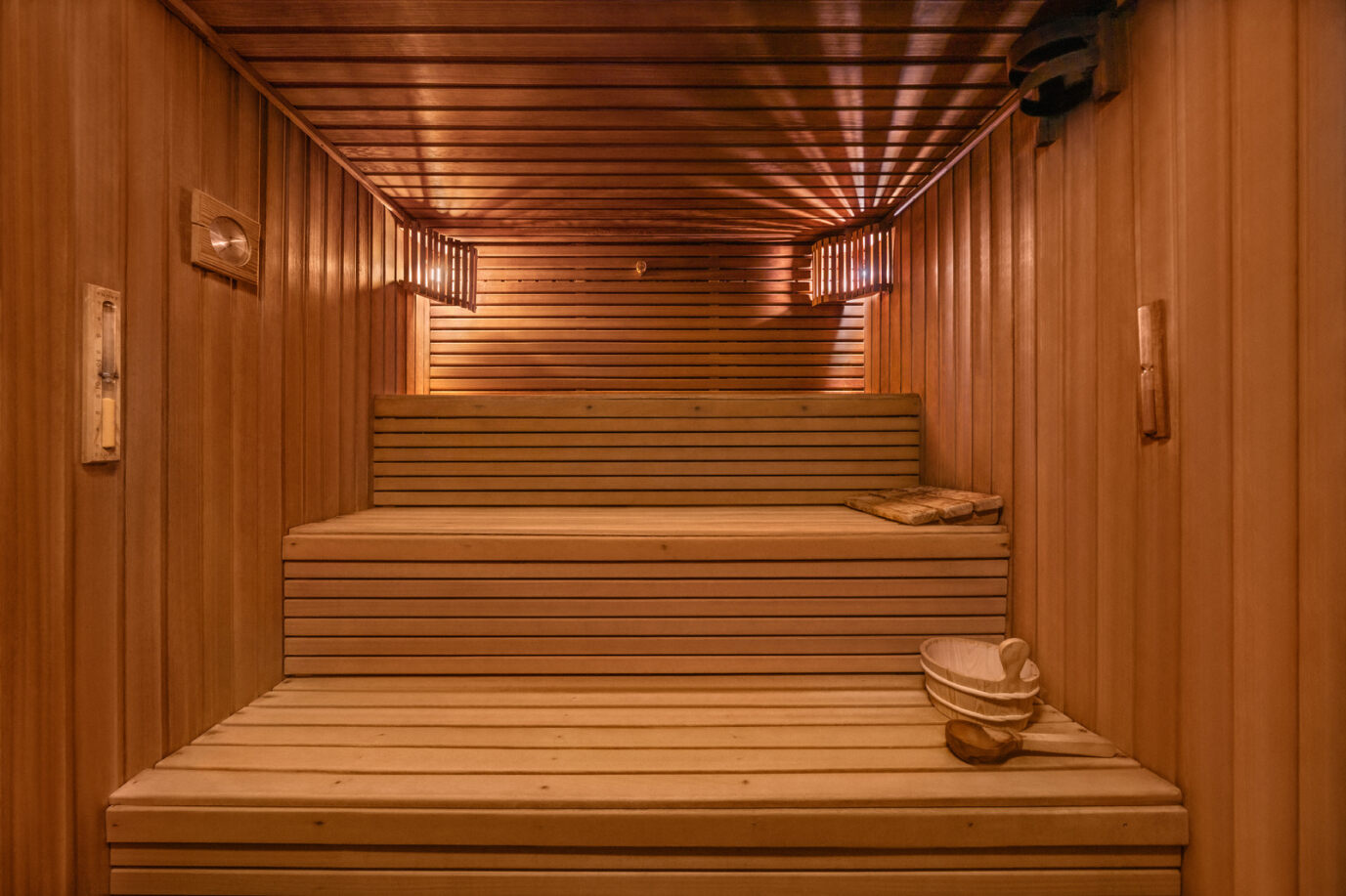 Sauna - Sinta a tensão desvanecer nesta câmara seca. A temperatura elevada induz uma transpiração intensa, eliminando assim as impurezas internas. Ao mesmo tempo, a melhoria da circulação funciona como um verdadeiro estímulo para o seu sistema imunitário.